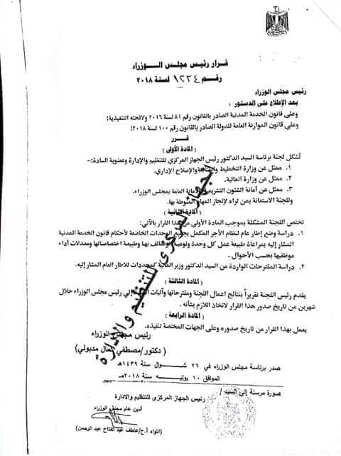 تشكيل لجنة لدراسة وضع اطار عام لنظام الأجر المكمل بجميع الوحدات الخاضعة لأحكام قانون الخدمة المدنية