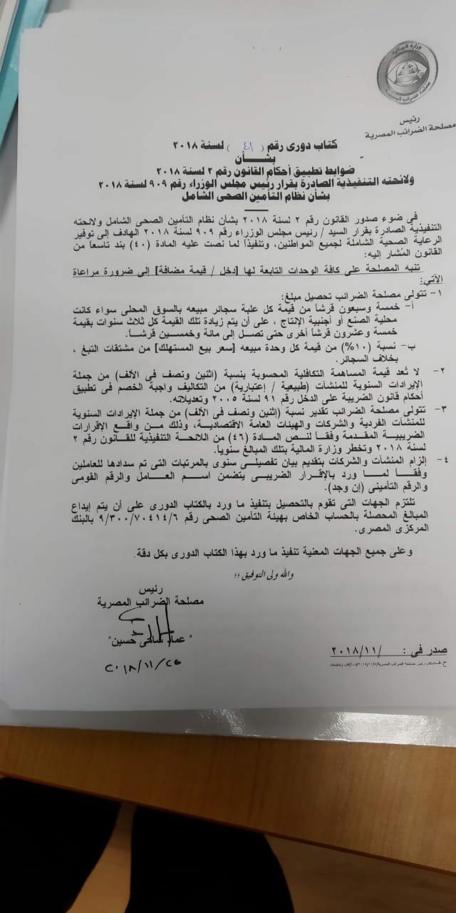 ضوابط تطبيق أحكام القانون رقم 2 لسنة 2018 بشأن نظام التأمين الصحي ولائحته التنفيذية